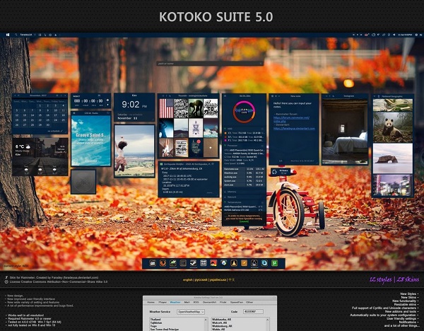 Kotoko Suite is loaded with a bunch of tools and gadgets. Useful information is displayed on the screen, and all the gadgets are beautifully designed. The look of the desktop gets completely changed when you apply this skin to your Windows.