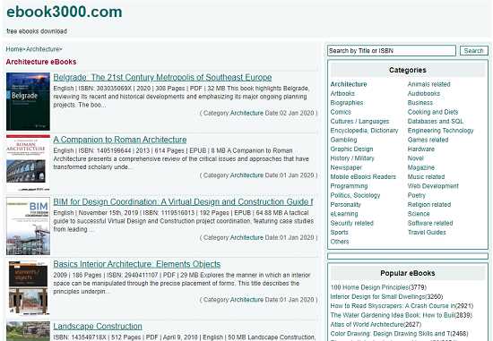 eBook 3000 is a free great resource to download eBooks from. All types of publications are published on the website and everything is available for free. No need to create an account or sign up for the subscription. The website is updated with dozens of books on a daily basis.
