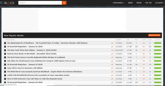 Torlock is a torrent website that eventually provides thousands of eBooks for free. Because of some copyright issues, this site is blocked in some countries. But one special thing to talk about Torlock is its fresh index of ebooks. Every single day dozens of fresh books are uploaded by the people.