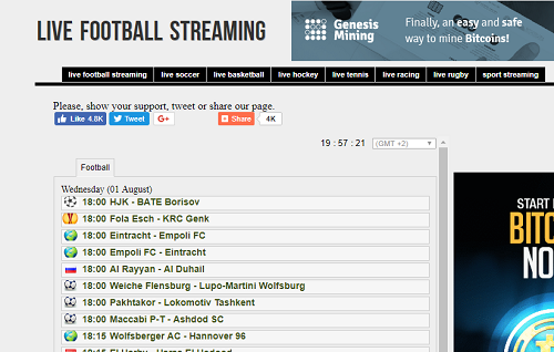 The live sports matches come in a good quality with little ads. You can use adblocker to stop some annoying ads on this site. For first time opening this site, it asks to use your CPU power for bitcoin mining. You better cancel it or else your computer might gets hanged in spite of running in a good condition.