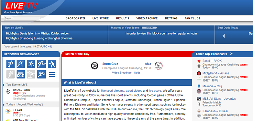 Laola1.tv also has premium account system to get rid of the before and after ads of any live sports match. But you can still enjoy your live sports matches for free. This site also lets you get a reminder for your favourite sports matches. This site is really great in visually and has some really great content for free legally. If you like to visit some legal sites then this is probably the greatest site to watch live Sports Matches.
